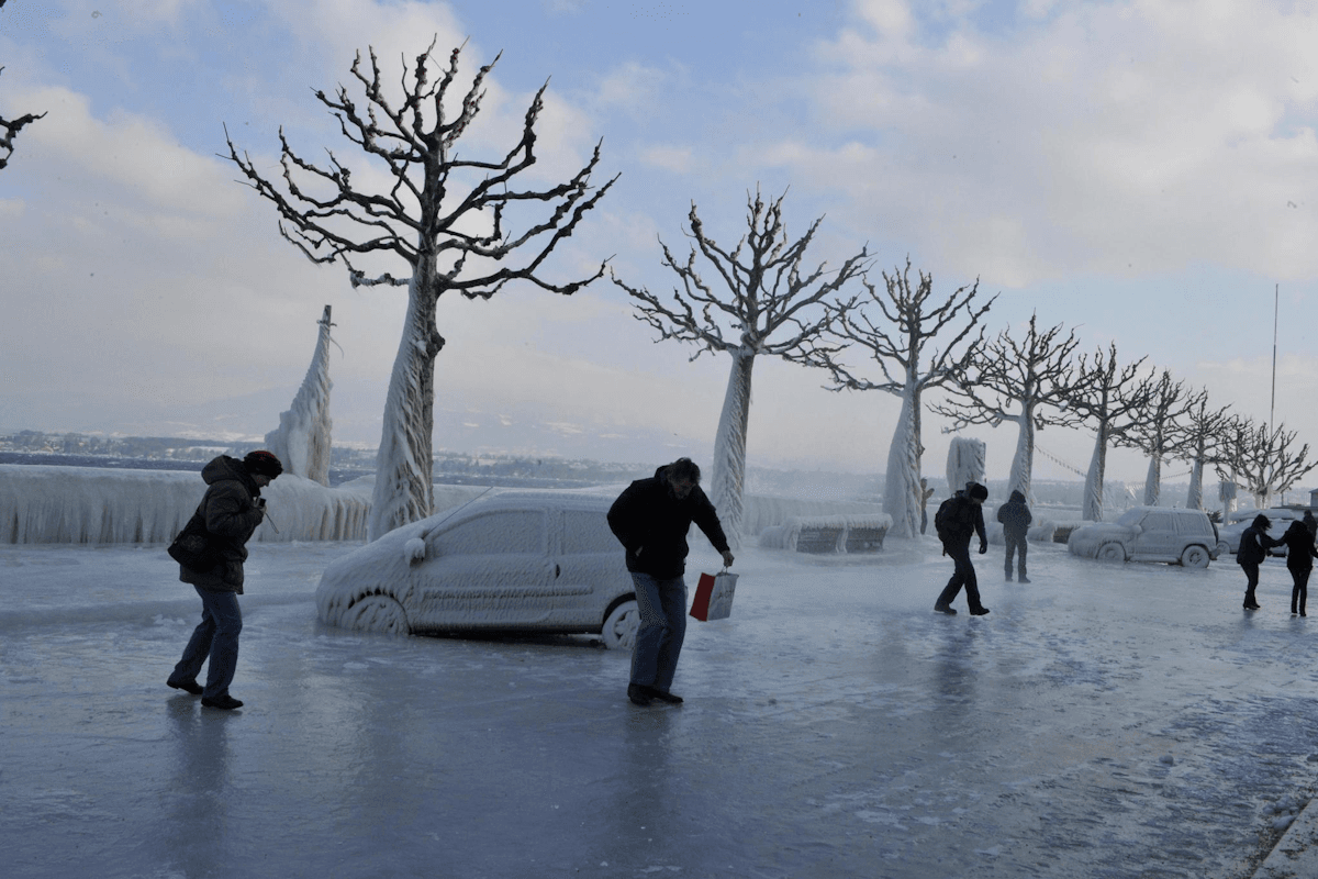 En réalité, cela fait plus de 7 ans que la France n'a plus vécu de "vague de froid" au sens strict du terme. Le dernier épisode date de fin février 2018. Du 26 au 28 février 2018, l'indicateur thermique était resté dans le négatif avec un pic à -3,2°C le 27. Les deux tiers nord et est de la France avaient connu 2 à 3 journées sans dégel, y compris Paris. La nuit la plus froide fut celle du 27 au 28 février avec des minimales descendant fréquemment sous les -10°C dans le centre et l'est de l'hexagone (-14°C à Luxeuil, Saint-Étienne et Aurillac). La bise était venue accentuer la sensation de froid avec des ressentis parfois proches de -10 en plein jour ! Certains secteurs bordant le Lac Léman ont été recouverts de glace sous les embruns poussés par la bise, comme l'illustre la photo ci-dessous.