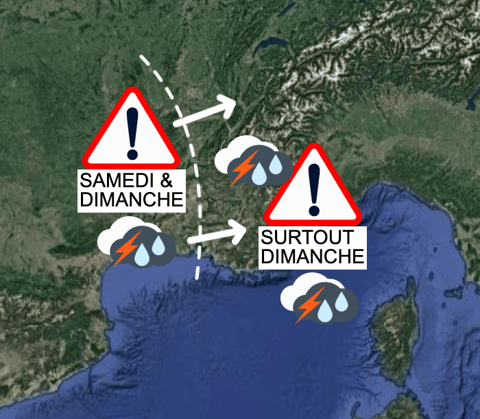 Compte tenu de la lente progression de cette dépression vers nos régions, les précipitations les plus intenses se produiront initialement entre les Cévennes et le Lyonnais, avant de se déplacer vers le sud des Alpes, tout en affectant de nouveau les Cévennes.
