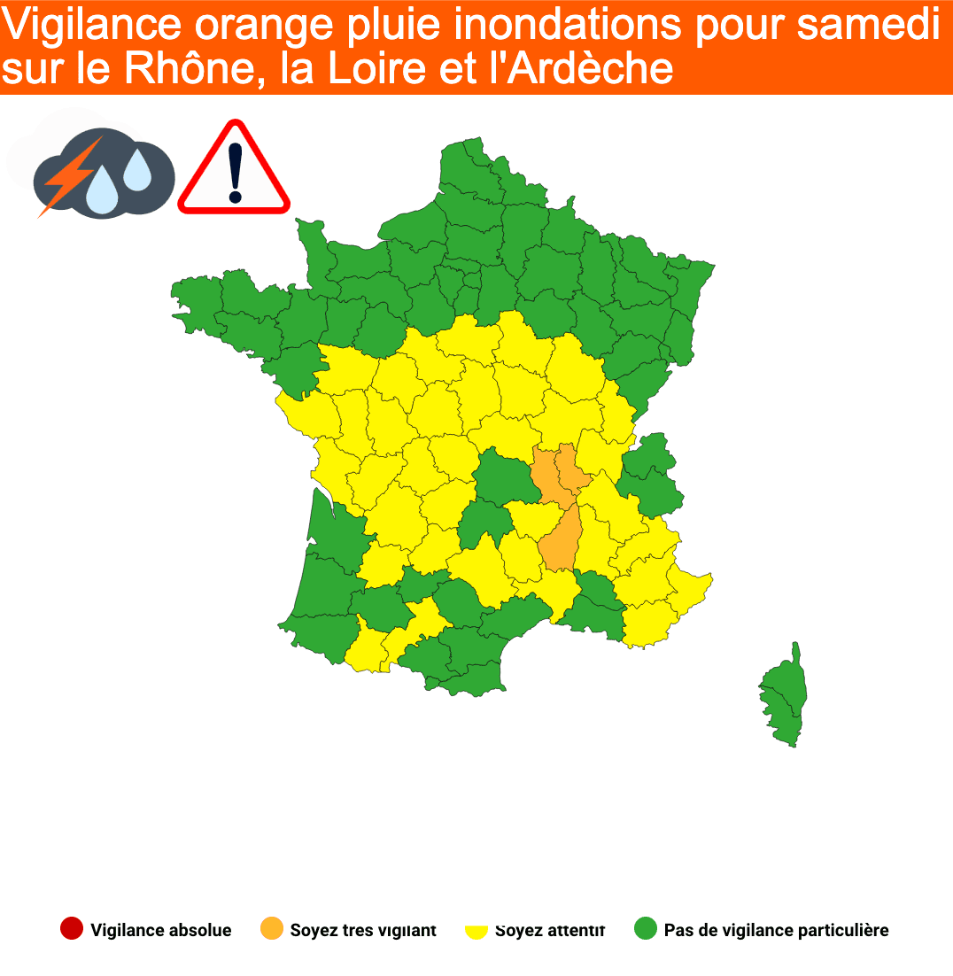 Une première vigilance orange pour le Rhône, la Loire et l'Ardèche