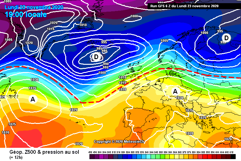 Situation atmosphérique sur l'Ouest de l'Europe le 23 Novembre 2020 - Modèle GFS via météociel.fr