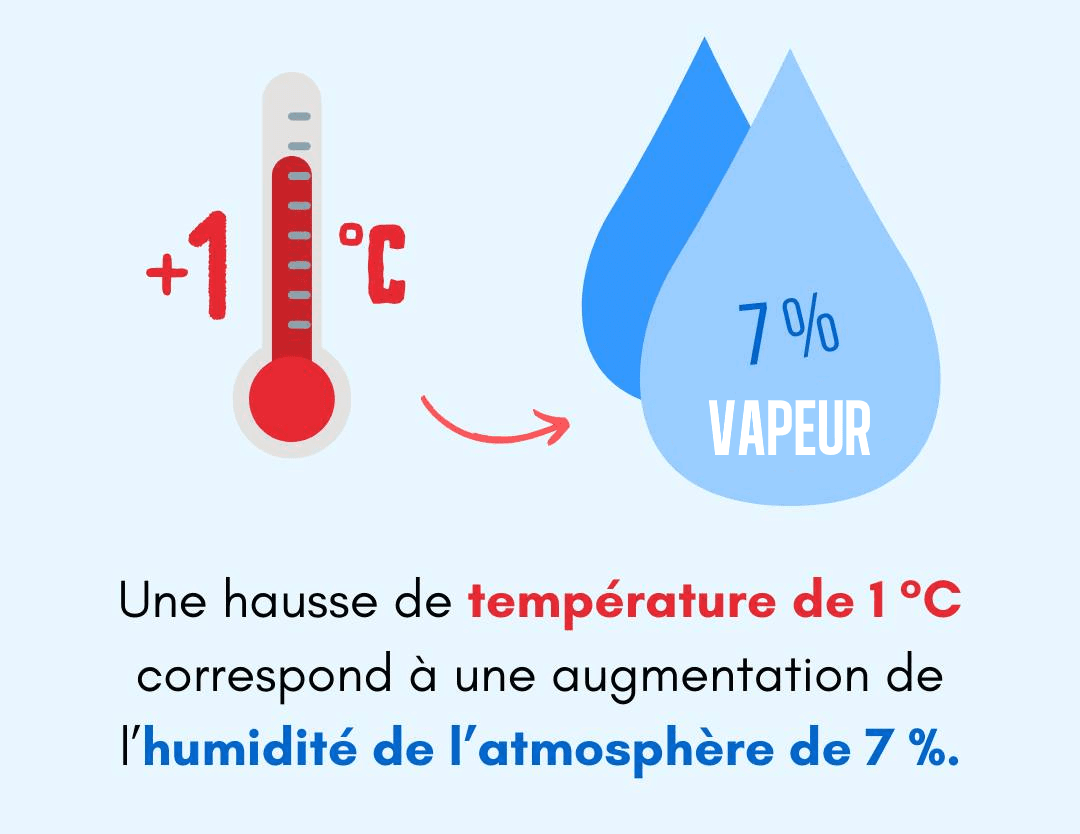 Pour chaque degré en plus, c'est 7% de vapeur d'eau en plus dans l'atmosphère