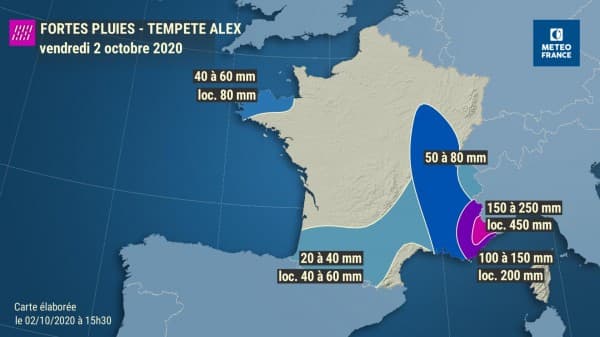 A 06h00, Météo-France plaçait bon nombre de départements du Centre-Est du pays en alerte pour un risque de pluies/inondations. Les Alpes-Maritimes ont également été placées en vigilance rouge en raison des très importants cumuls de pluie attendus.