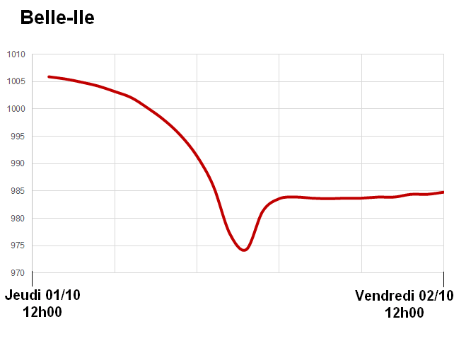 Importante chute de pression à l'approche de la tempête Alex à Belle-Ile - Via keraunos.org