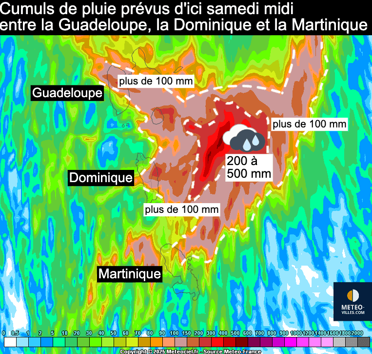 Cumuls de précipitations attendus sur les Antilles jusqu'au 11 octobre 2025 – via meteociel.fr
