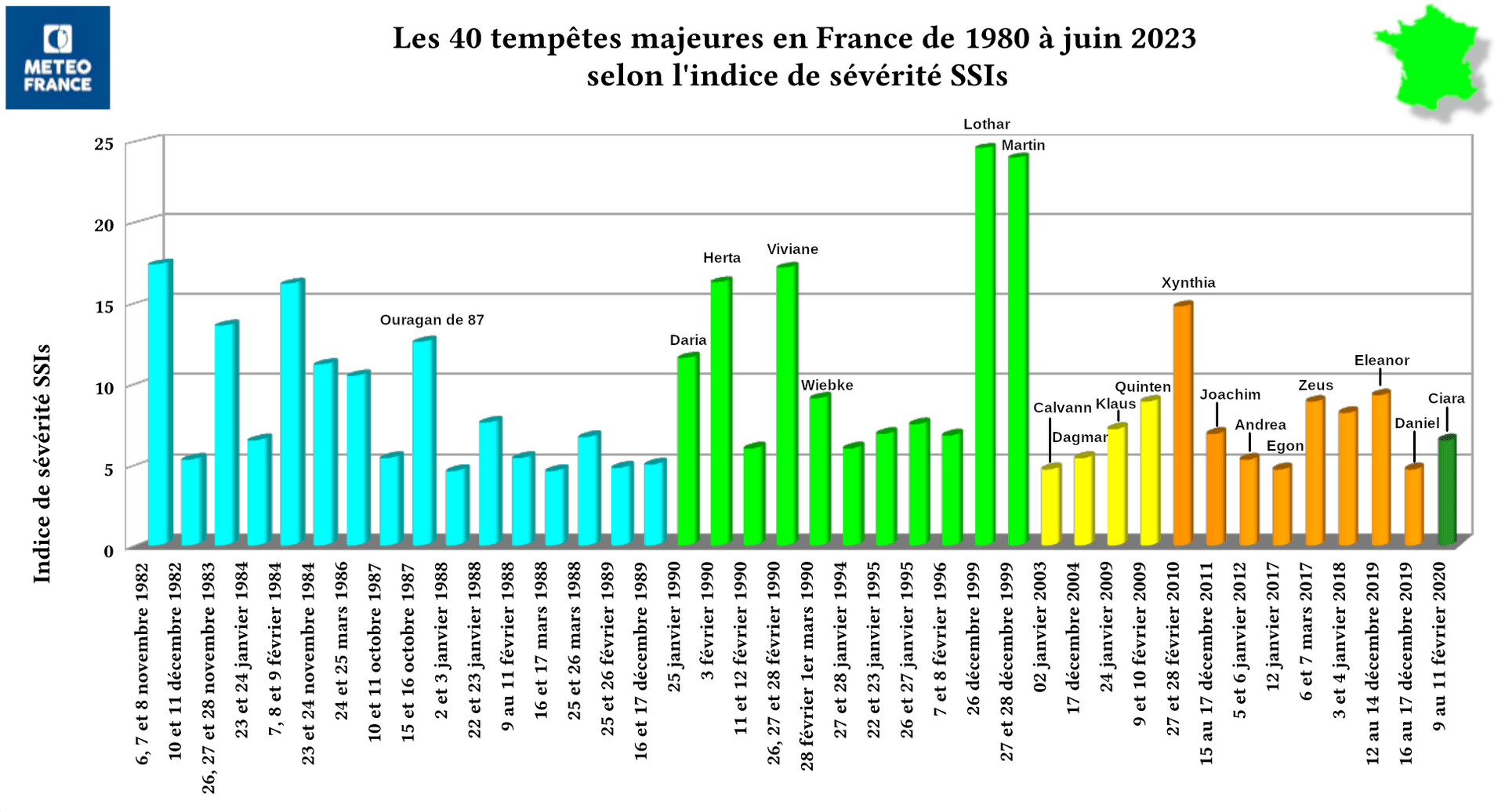 Les 40 plus fortes tempêtes en France entre 1980 et 2023 - Météo France