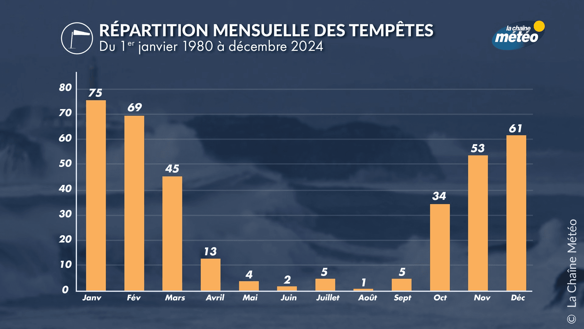 Répartition mensuelle des tempêtes ayant touché la France de 1980 à 2024 - La Chaîne Météo