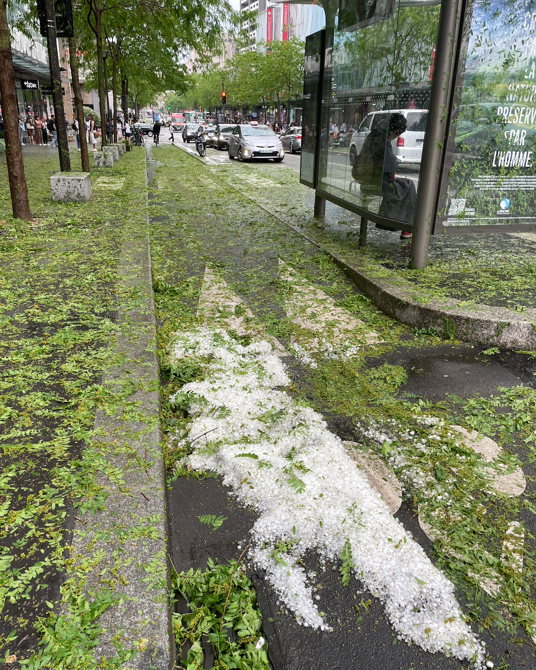 Les dégâts de la grêle depuis une tour de Beaugrenelle (Paris 15e)