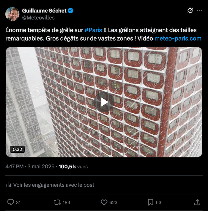 Vidéo de la grêle depuis une tour de Beaugrenelle (Paris 15e)